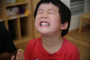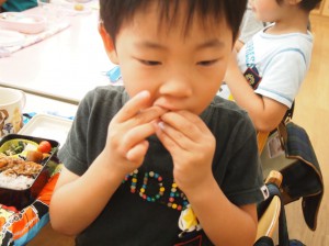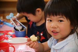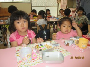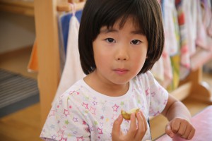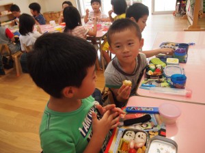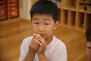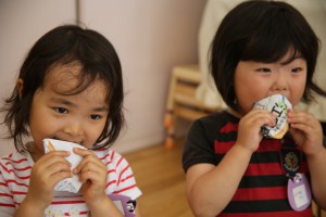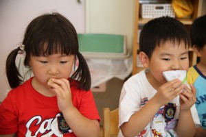 ペアの年長児は、年中さんがおいしそうにいただく姿を