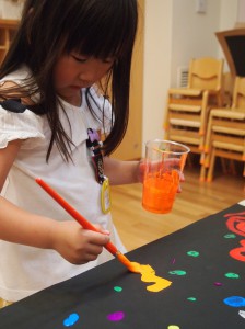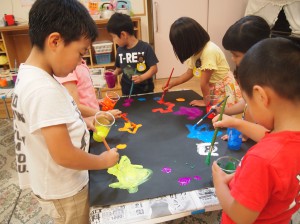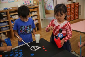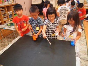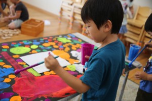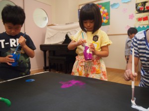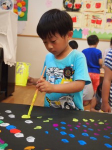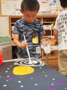いざ、真っ暗な星空(黒い画用紙)を前に、