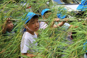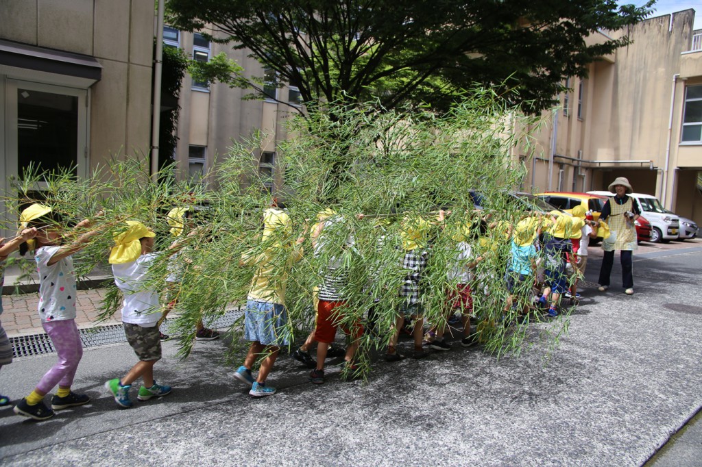 今日は、七夕飾りのための笹を