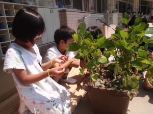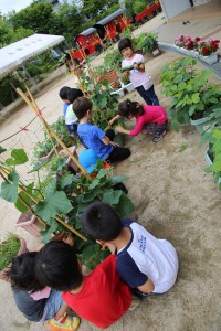年長組で植えていた夏野菜(きゅうりに枝豆)