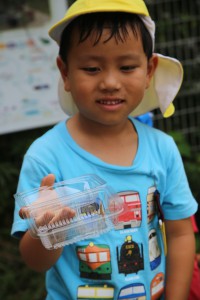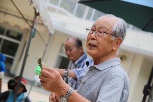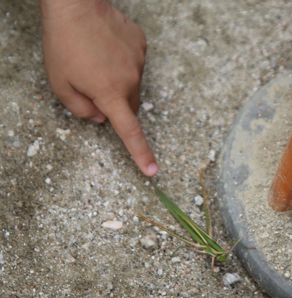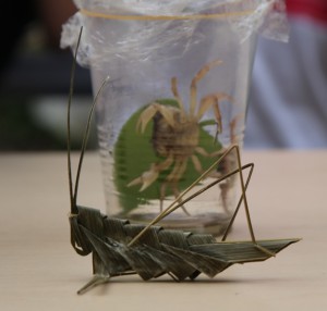 これは、棕櫚(しゅろ)の葉っぱで作ったバッタですよ!
