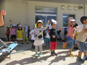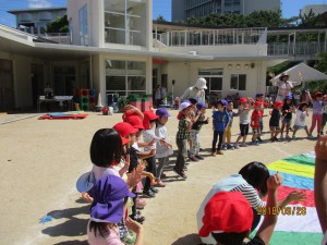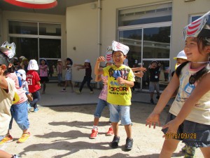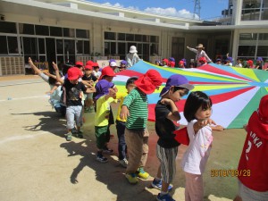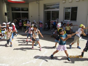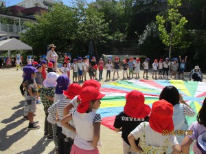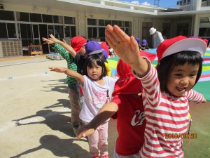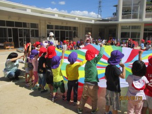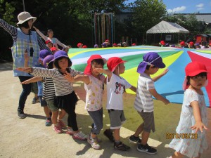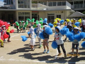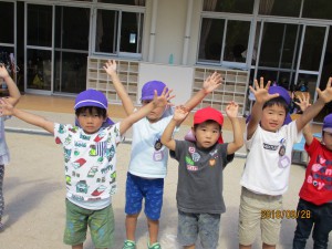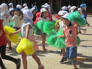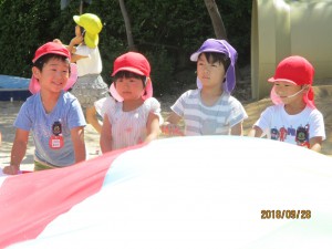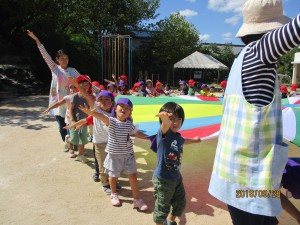 陽の光の降り注ぐ青空の下での子どもたちの姿を