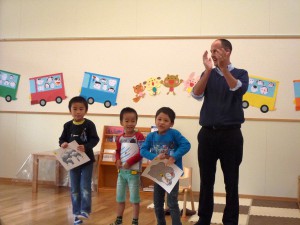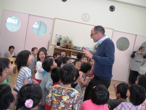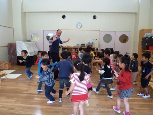 サイモン先生からはじめましてのアプローチに、子どもたちはドッキドキ