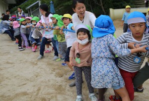 下の園庭には、他学年のお兄ちゃん・お姉ちゃんもおり、