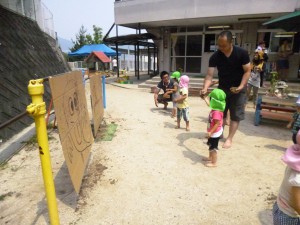 今日は、幼稚園で、「おうちの方と一緒に遊ぼう」ということで、