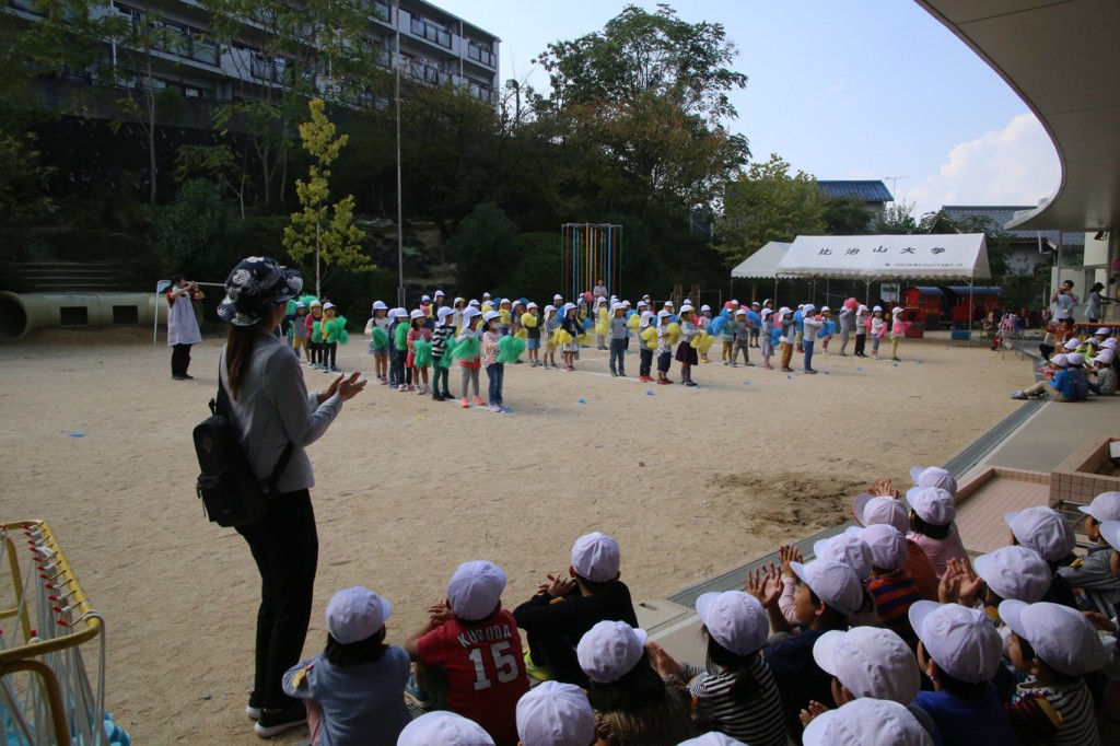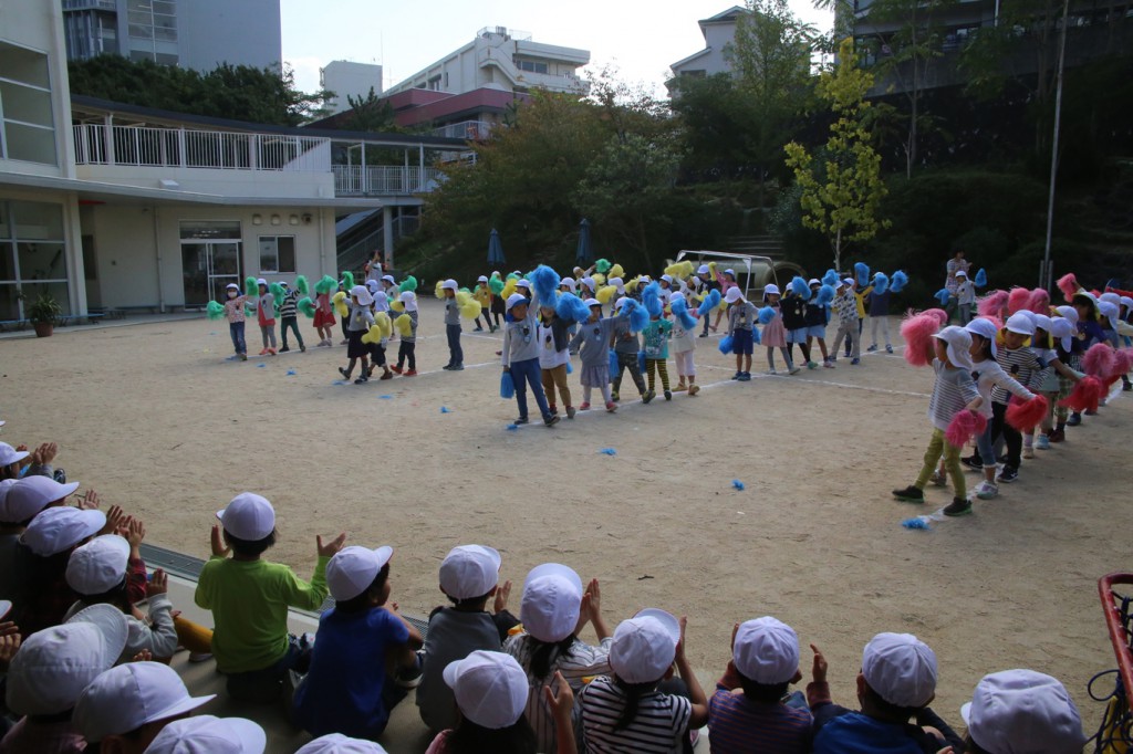 温かい手拍子の応援をもらい、張り切る年長児です。