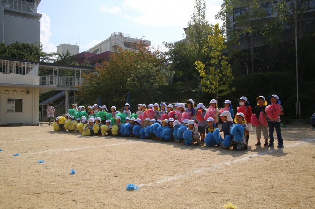 運動会当日は、あいにくの雨でアリーナでの披露でした。