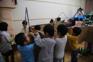 しかし、きく組が過ごしているのは仮の保育室。