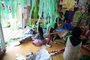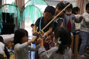 自分たちの作った迷路や妖怪たち