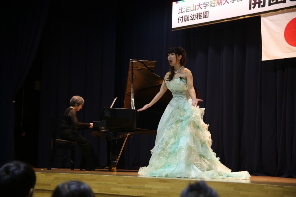 伸びやかな素敵な歌声で、園歌をご披露くださいました。