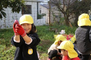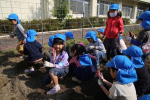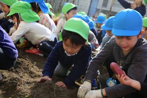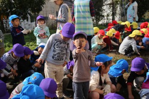 年長さん、さつまいもを上手に隠してね!