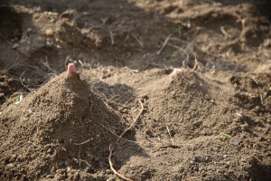 きれいにならした畑を使って
