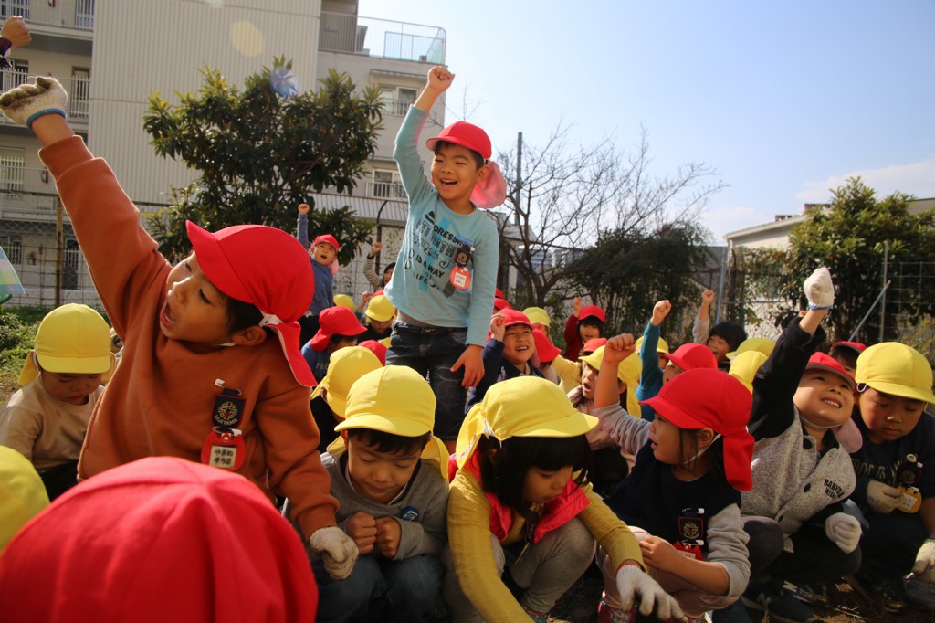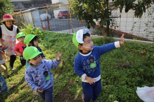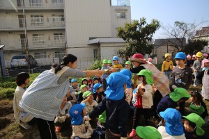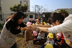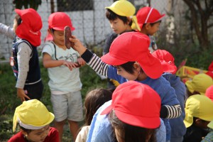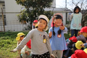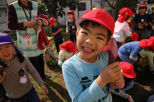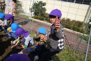 年長さん、おいもを隠すのに年少さんに対しては、
