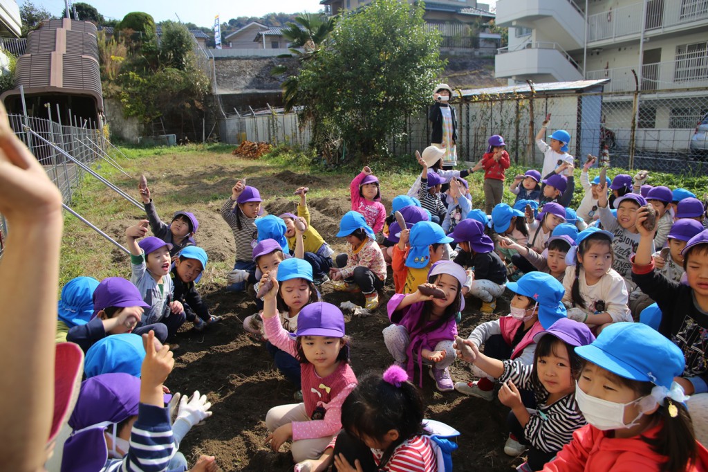 年長さんのためにいもを隠しました。