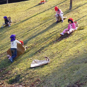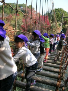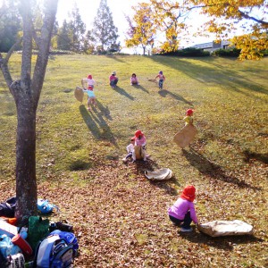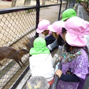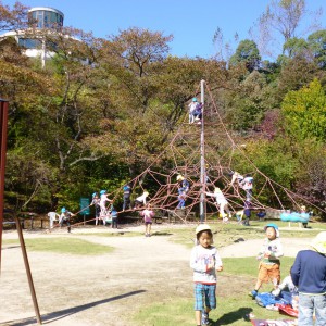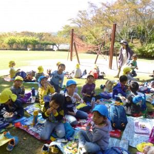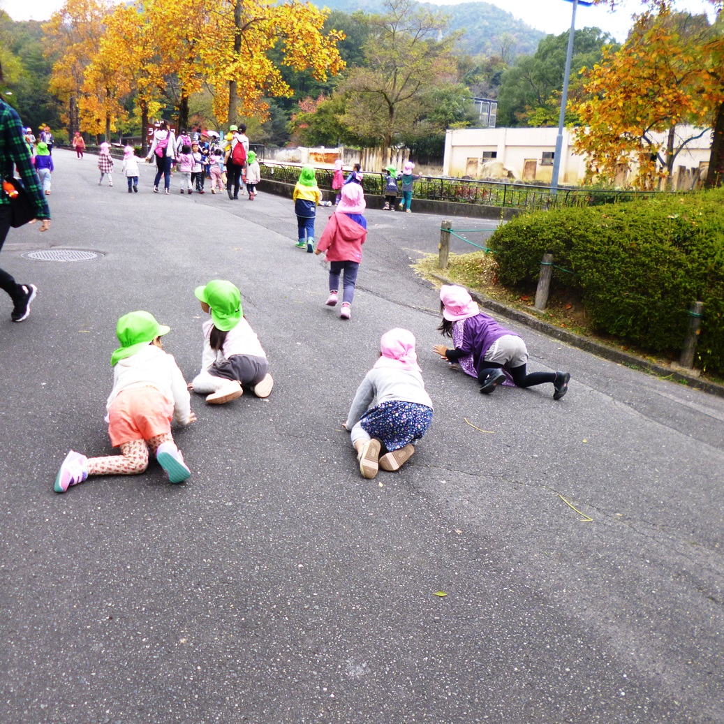 二学年が遠足を済ませ、この日を待ち侘びていた年中さんの出番、森林公園へ
