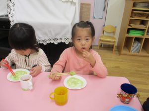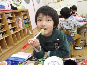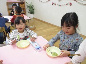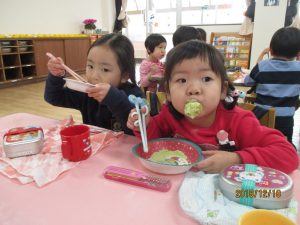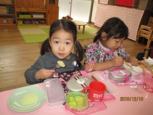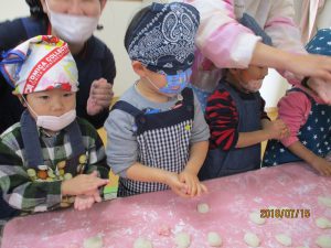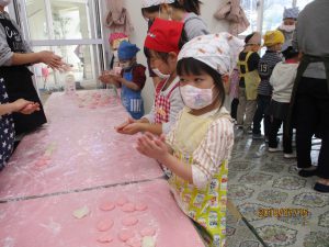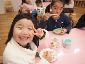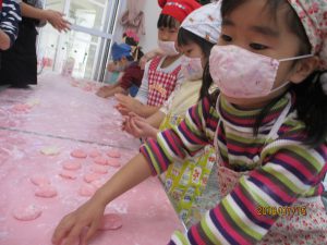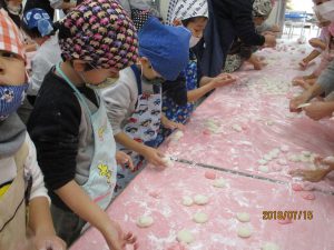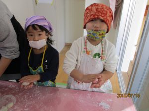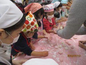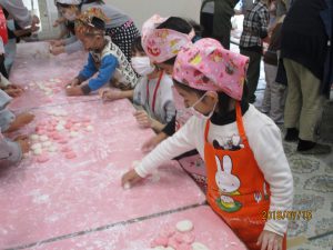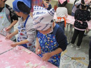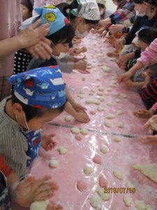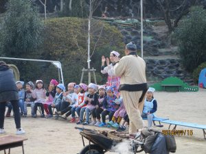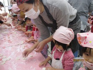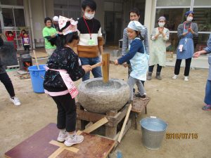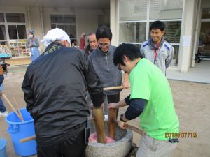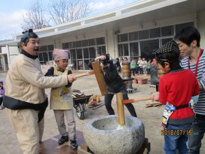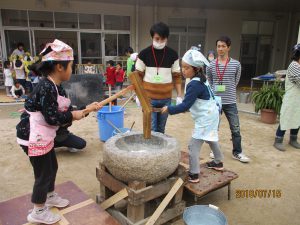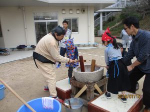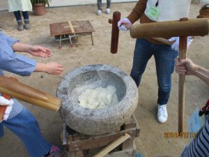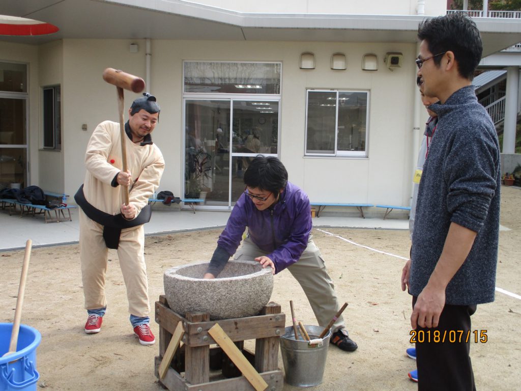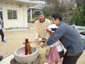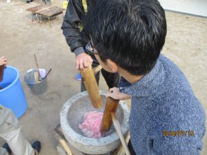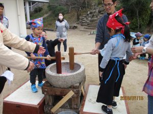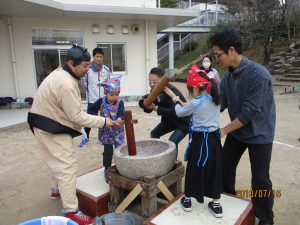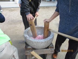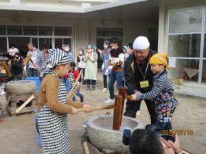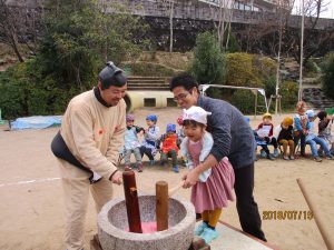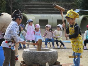 今日は、全園児の待ちに待ったおもちつき大会です。