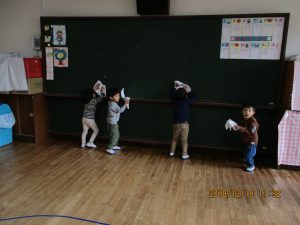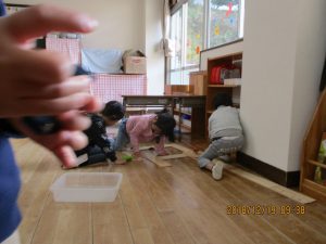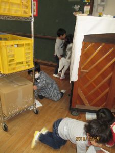 おうちごっこで大活躍だった冷蔵庫に、黒板…