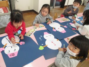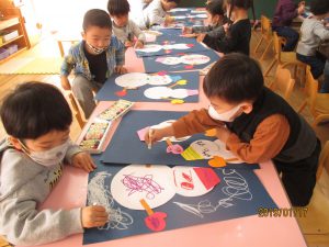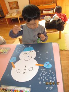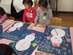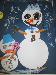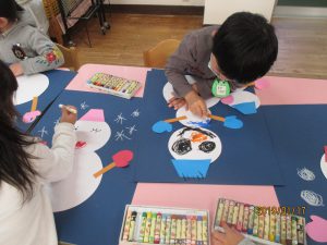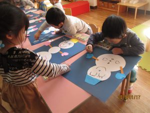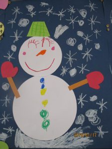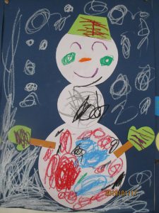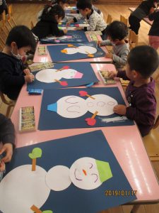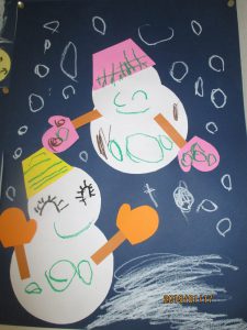 クラスの中は、雪を待つ子どもたちと雪だるまとで