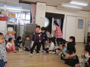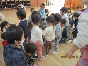 前回のうさぎぐみでは、年中・年長の部屋に分かれて