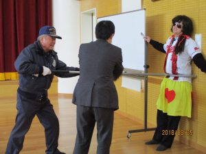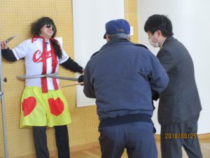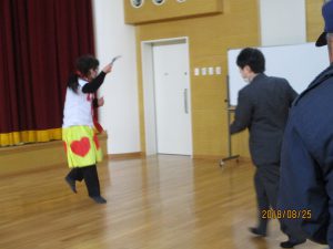 不審者を追い詰めるも、ホールに入ってしまいました。