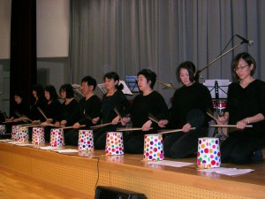 まずは、段ボールで作った太鼓によるオープニング!!!
