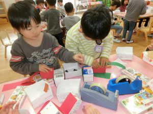セロテープの扱いも器用になってきたのには