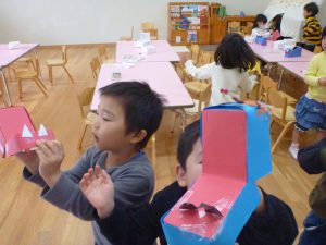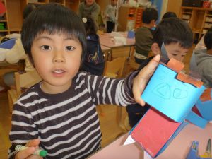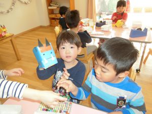 年中さんでは、鬼のパペットを作ったみたいです。