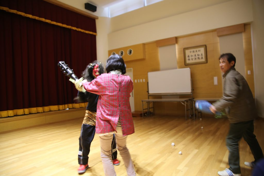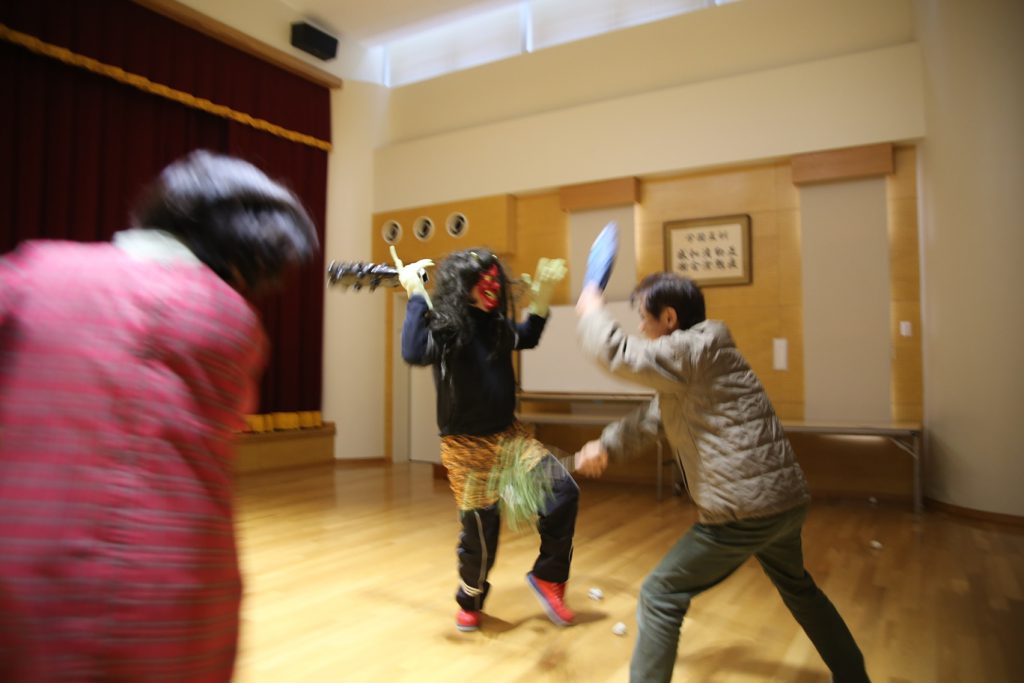 怖い鬼をみんなでやっつけて…