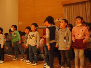 年中年長は、園庭に向かって大声で、