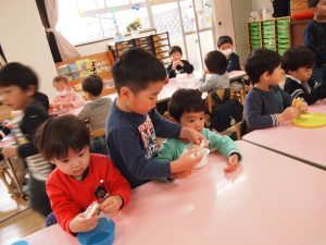 去年一昨年の節分会を経験している園児たちは、