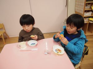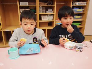 節分会にちなんだお弁当の子もおり、