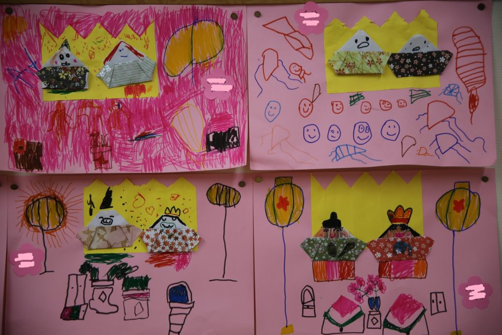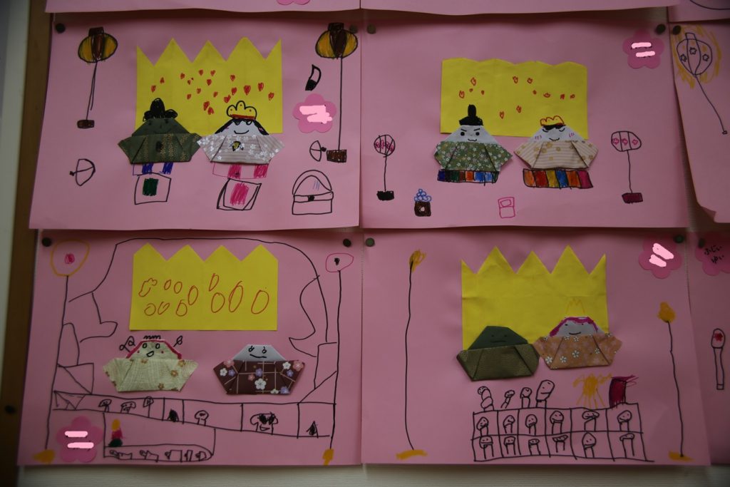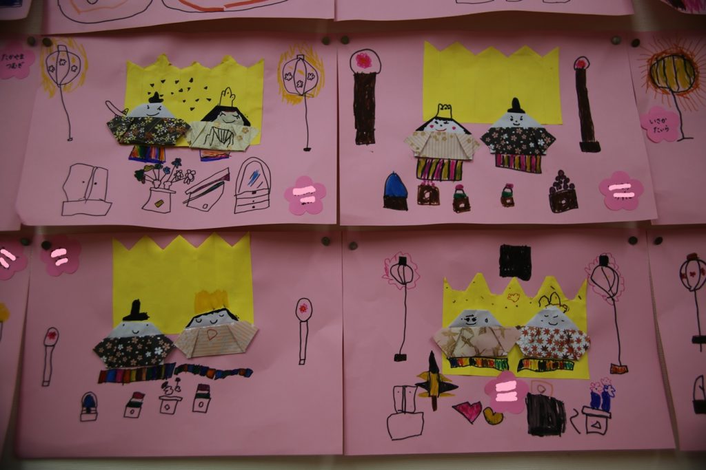 今まで、幼稚園でおひなさまを見たり