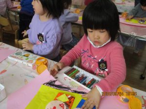 「こっちの色は、おひなさまにしよう」