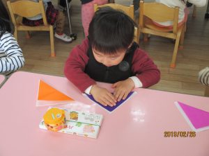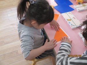 折り紙を使ってお着物を折っていきました。