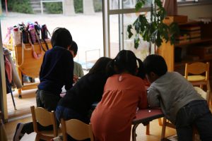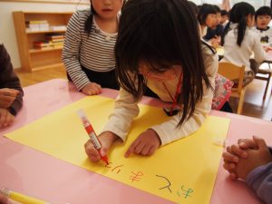字の得意な人と、絵を描くのが得意な人に分かれて