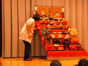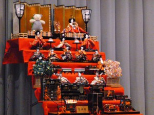 幼稚園に、七段飾りのお雛様が飾られ、