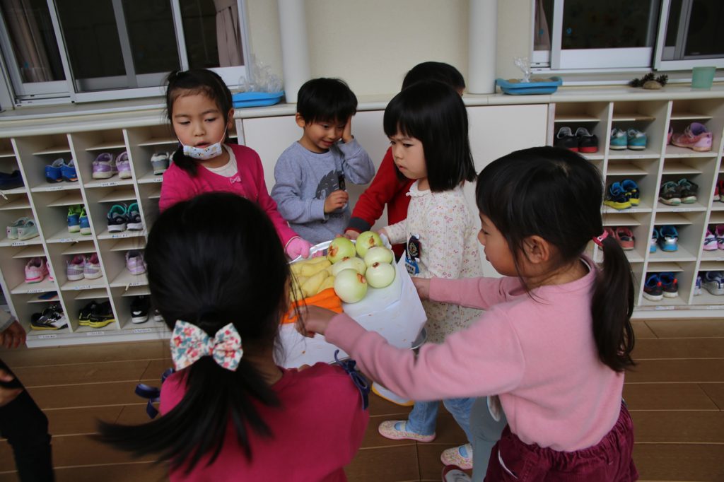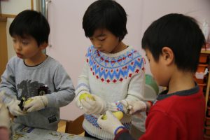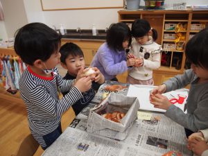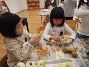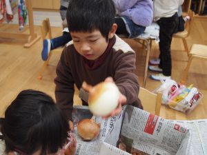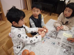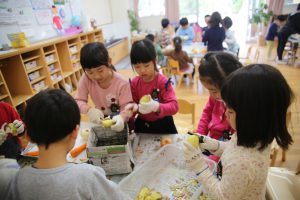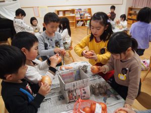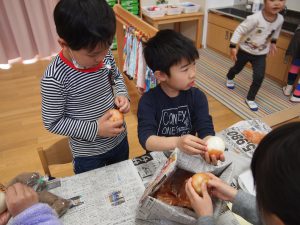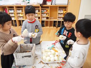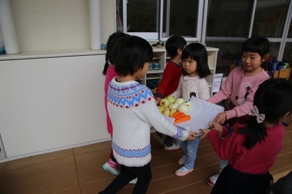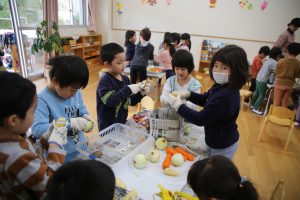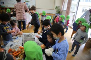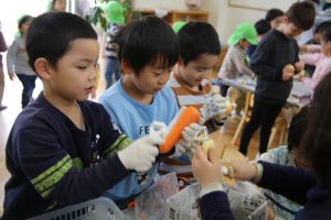 年長児が買ってきた野菜などを準備に取り掛かります。