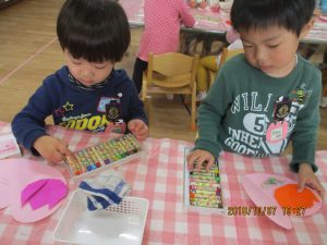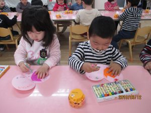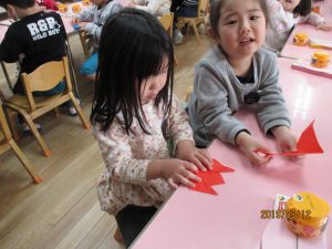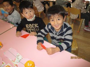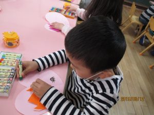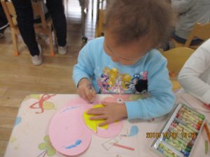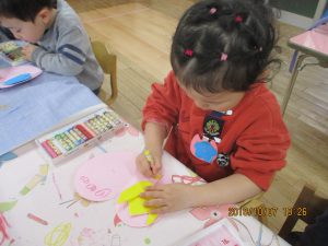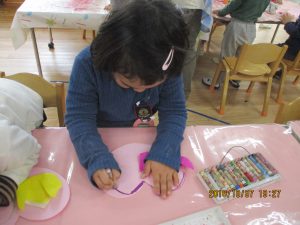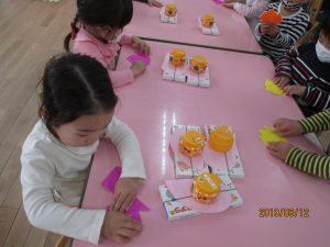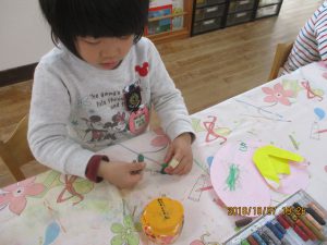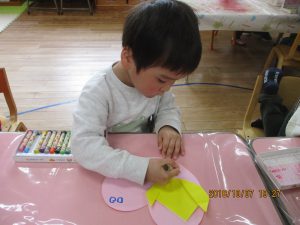 製作の大好きな年少の子どもたちですが、