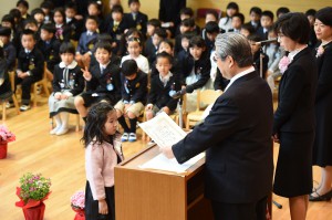 一人ひとりがはっきりした声で「ありがとう」と言って卒園証書を受け取りました。