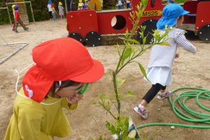まずは園庭の探検からスタート!