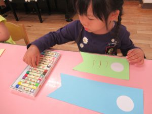 (どの色のクレパス使おうかな…?)