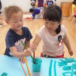 「クレパスが消えない!」「絵の具をはじいてる~~」