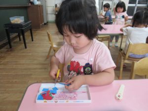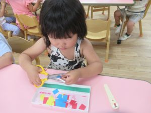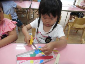 ?細い棒をチョキチョキ…慎重に切っていきます。