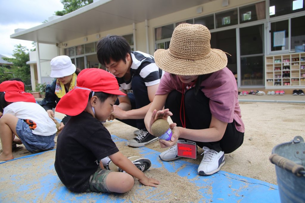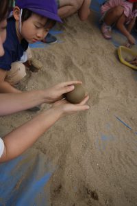 年中組ではこの日、「めざせ!光る泥だんご作り!」