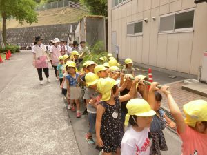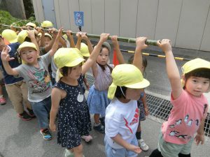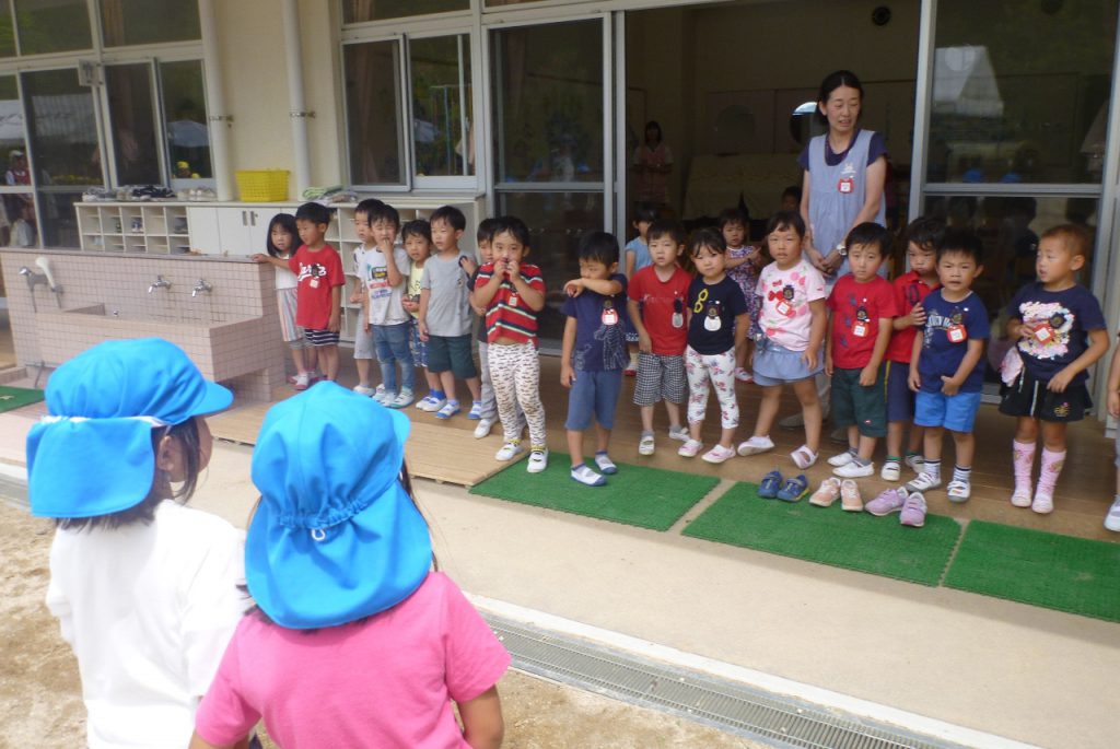 出掛けることの多い年長さんを目ざとく見つける年中さん