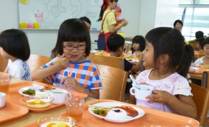 幼稚園年長児を対象とした給食試食会が実施されました。