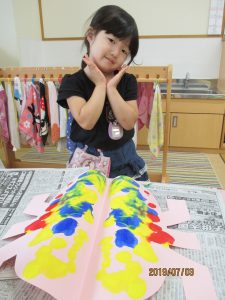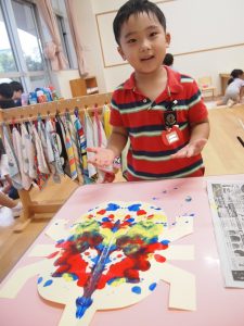 そこで、デカルコマニーという手法で、服を作ってあげました。