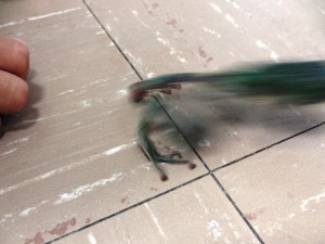 生き餌でないと食べないことを知っているのか、ピンセットに蜘蛛を挟み、ゆらゆら