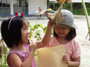 いろいろな子に見せたあとは、花壇の端に置き、「なまんだーぶつ、しといた」・・・と。
