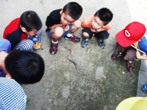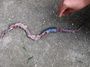 大人から見て、あまりにグロテスクなヘビの死骸に、子どもの登園前にどうしておくか・・・と
